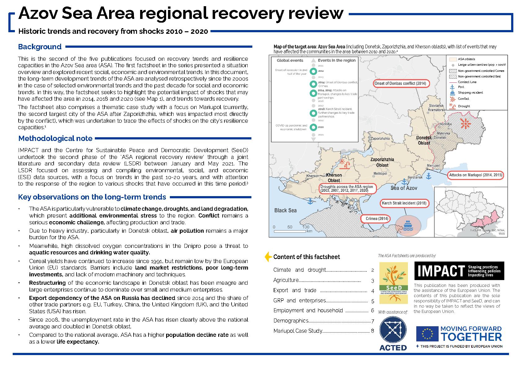 This is the 2nd of the five publications focusing on recovery, environmental and development trends and resilience capacities in the Azov Sea area including a deep dive in Mariupol.